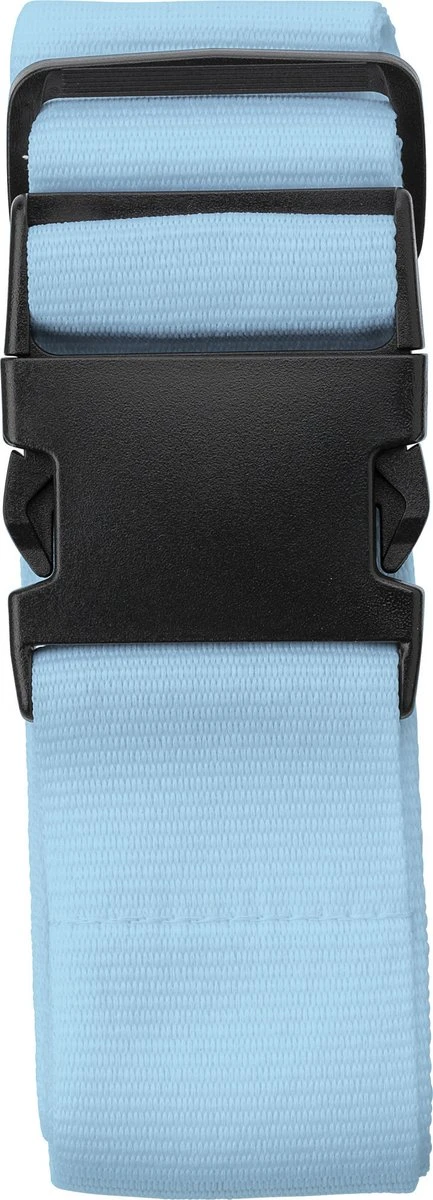 2x stuks kofferriemen / bagageriemen zonder label 155 cm lichtblauw. De polyester koffer spanband is verstelbaar. Afmeting riem: 155 x 4,8 cm.
