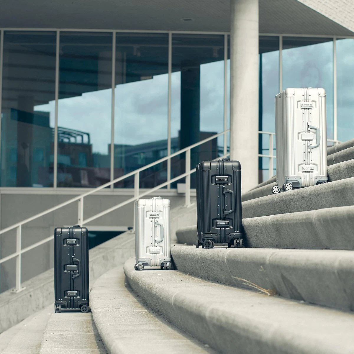 De Mozzel Darrow – Aluminium reiskoffer – World Traveler – Handbagage koffer met 4 wielen – 35 Liter – 20 inch – Harde koffer – Zilver – heeft een modern ontwerp en is gemaakt van lichtgewicht aluminium waardoor hij sterk maar toch licht is. De harde koffer zorgt voor een goede bescherming tijdens je vakantie, zakenreis of weekendje weg. Ze zijn ontworpen met het oog op een lange levensduur en zijn voorzien van 2 TSA sloten zodat reizigers zich tijdens hun reis geen zorgen hoeven te maken dat er iets met hun bezittingen gebeurt. En met behulp van de 360 graden roteerbare antislip wielen manoeuvreert u zich gemakkelijk door het vliegveld.