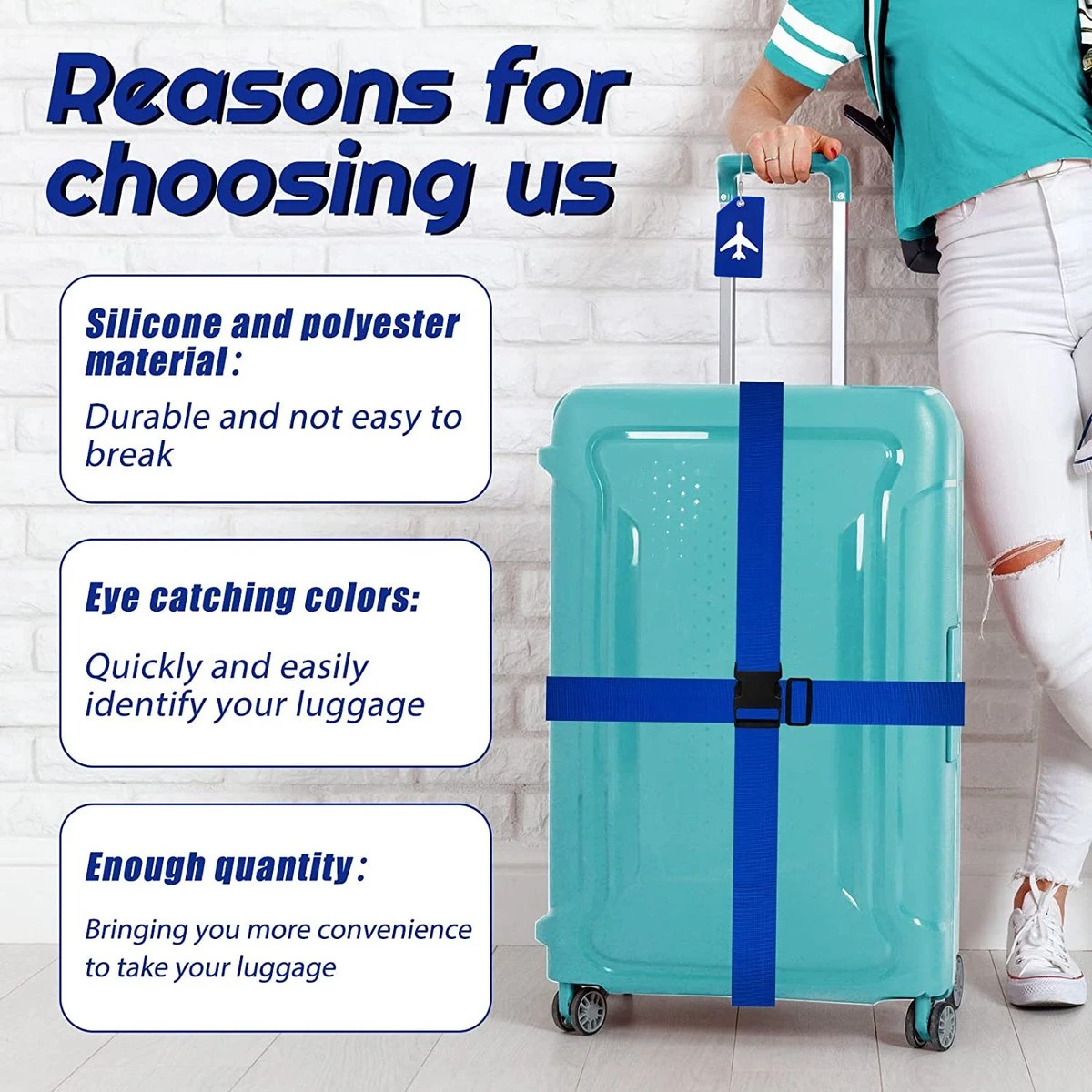 Wat u krijgt: u ontvangt 2 stuks bagageriemen en 2 stuks siliconen bagagelabels met naam-ID-kaarten, goede combinaties en voldoende hoeveelheid voor u om te gebruiken en te vervangen terwijl u reist of op zakenreis gaat, wat u meer gemak brengt om uw bagage mee te nemen.