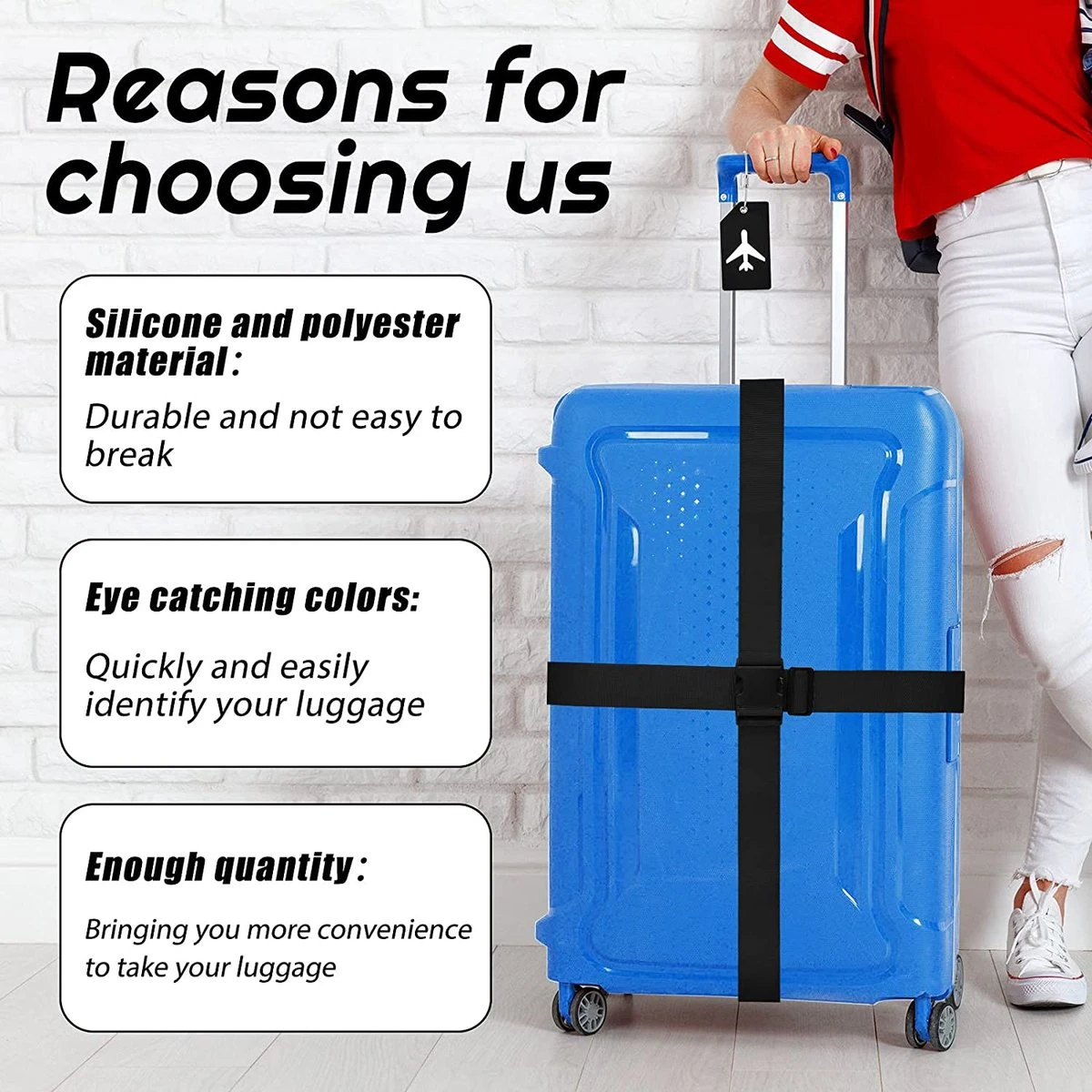 Wat u krijgt: u ontvangt 2 stuks bagageriemen en 2 stuks siliconen bagagelabels met naam-ID-kaarten, goede combinaties en voldoende hoeveelheid voor u om te gebruiken en te vervangen terwijl u reist of op zakenreis gaat, wat u meer gemak brengt om uw bagage mee te nemen.