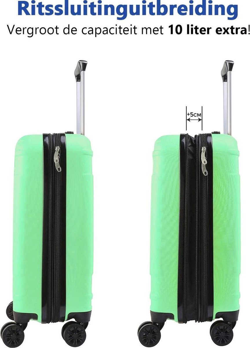 De Velocity reiskoffer met wielen van CabinMax is geschikt voor zowel handbagage als ruimbagage en heeft een inhoud van 44 liter. Dankzij de 360 graden wielen is de koffer gemakkelijk en licht te verplaatsen. Deze betaalbare koffer heeft 3 opbergvakken met ritsen en bevat het een handige spanband. Met deze spanband kun je jouw kleding vastzetten en veilig vervoeren. Door het telescopisch handvat, die uitschuifbaar is, is de rolkoffer geschikt voor groot en klein.