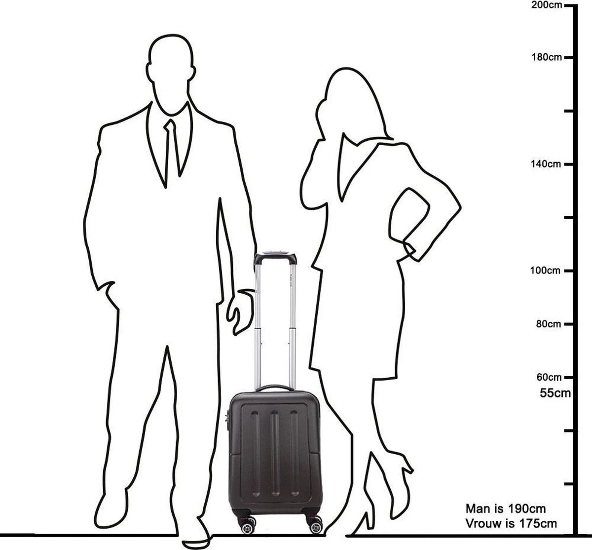 Afmetingen: 55 x 35 x 20 cm (hoogte afmeting is inclusief wielen).