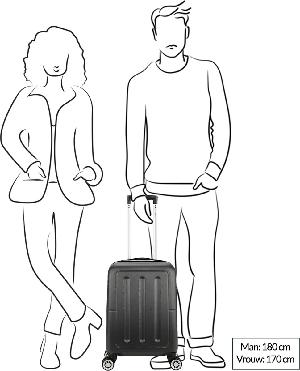 handbagage formaat kofferinhoud 32 literritssluiting rondombinnenin gevoerd en tussenschot met ritsmeerdere insteek- en ritsvakken binneninhandvat op bovenkant4 zwenkwielenuitschuifbare trekstangcijferslot