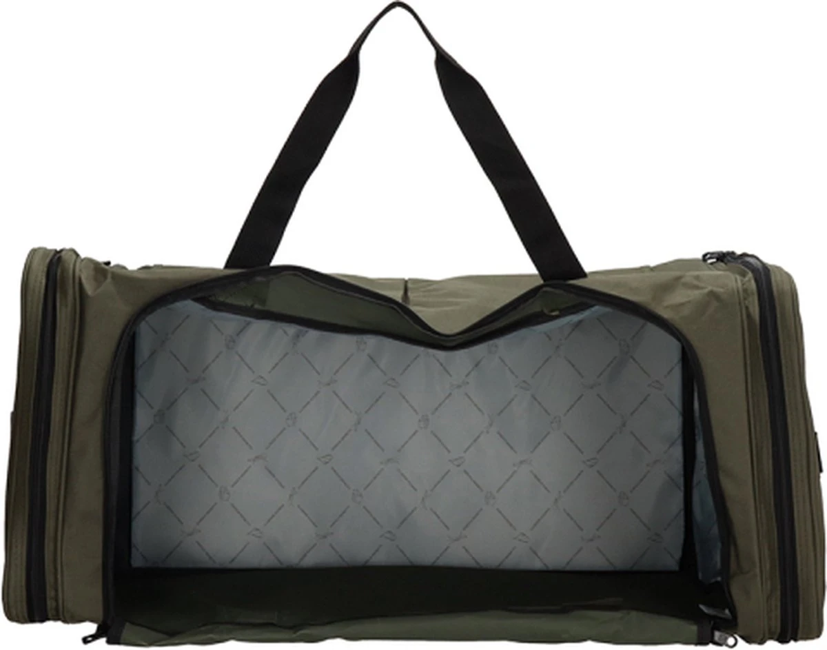De tas heeft twee stevige polyester handvaten die je met een klittenband wikkel aan elkaar kunt maken én een afneembare en verstelbare lange schouderband met schouder patch. Een handzame weekendtas of om al je sportspullen in mee te nemen.