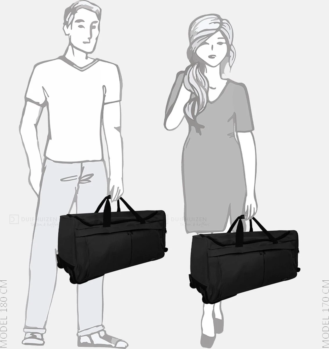 De tas heeft een volledig verstevigde bodemplaat met kunststof beschermstukken op de bodem en de zijkant, waardoor de tas zeer stevig is en ook op de zijkant rechtop kan worden gezet. De reistas heeft twee wielen en een uitschuifbare trekstang.