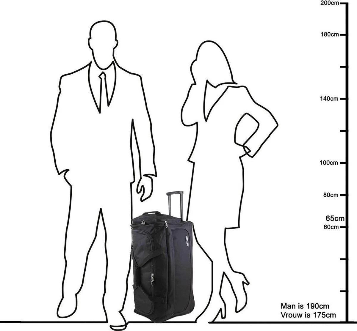 Je zit goed met de sporttassen/reistassen op wielen van Orlando Enrico Benetti. Met de 35303 heb je de middelmaat van de serie in handen. Ideaal van formaat, praktisch in gedeeld met allerlei rits- en steekvakken neem je gemakkelijk al je reisspullen of sportkleding mee. Op de twee soepele skate wieltjes rijdt de wieltas makkelijk achter je aan. De reistas is gemaakt van stevig polyester en ook verkrijgbaar in andere formaten en allerlei kleuren.