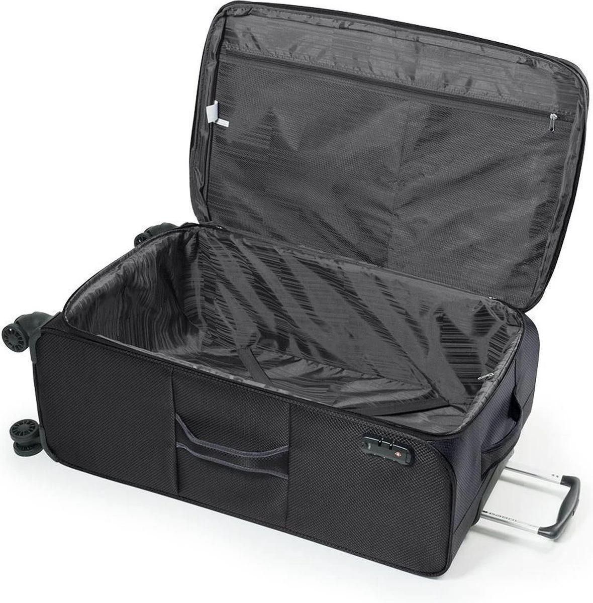De Trolley Large uit de Cloud serie van weegt slechts 2.7 kg. In de koffer is ruimte voor ongeveer 23 kg bagage dankzij de inhoud van 91 liter. Deze bagage kan erg makkelijk worden opgeborgen in het ruime hoofdcompartiment met de twee elastische pakriemen. Voor kleinere items is ruimte in de ritsvakken aan de binnen- en voorzijde. De koffer kan erg comfortabel worden vervoerd dankzij de vier soepele, dubbele wielen, de telescopische trekstang en de twee handvatten.