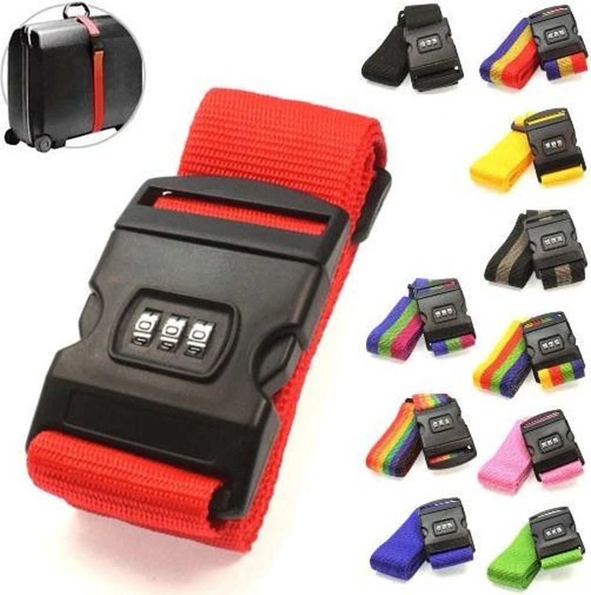Kofferband & Combislot, 12Assortiverstelbare Nylon Bagageriem Met 3 Cijver Combinatieslotafmeting: Breedte 6 Cm, Totale Lengte Band: 2 X 87 Cm