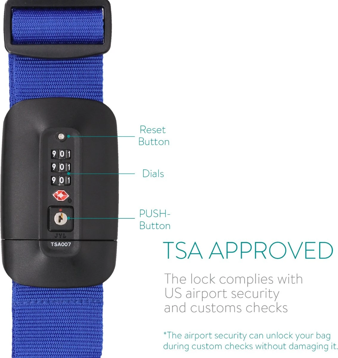 - Je bagage gaat veilig met je mee op reis. Doordat jij zelf je unieke code kiest kan alleen jij de kofferriem openen. Dankzij TSA slot kan alleen de airport security bij een controle de koffer openmaken zonder deze te beschadigen.