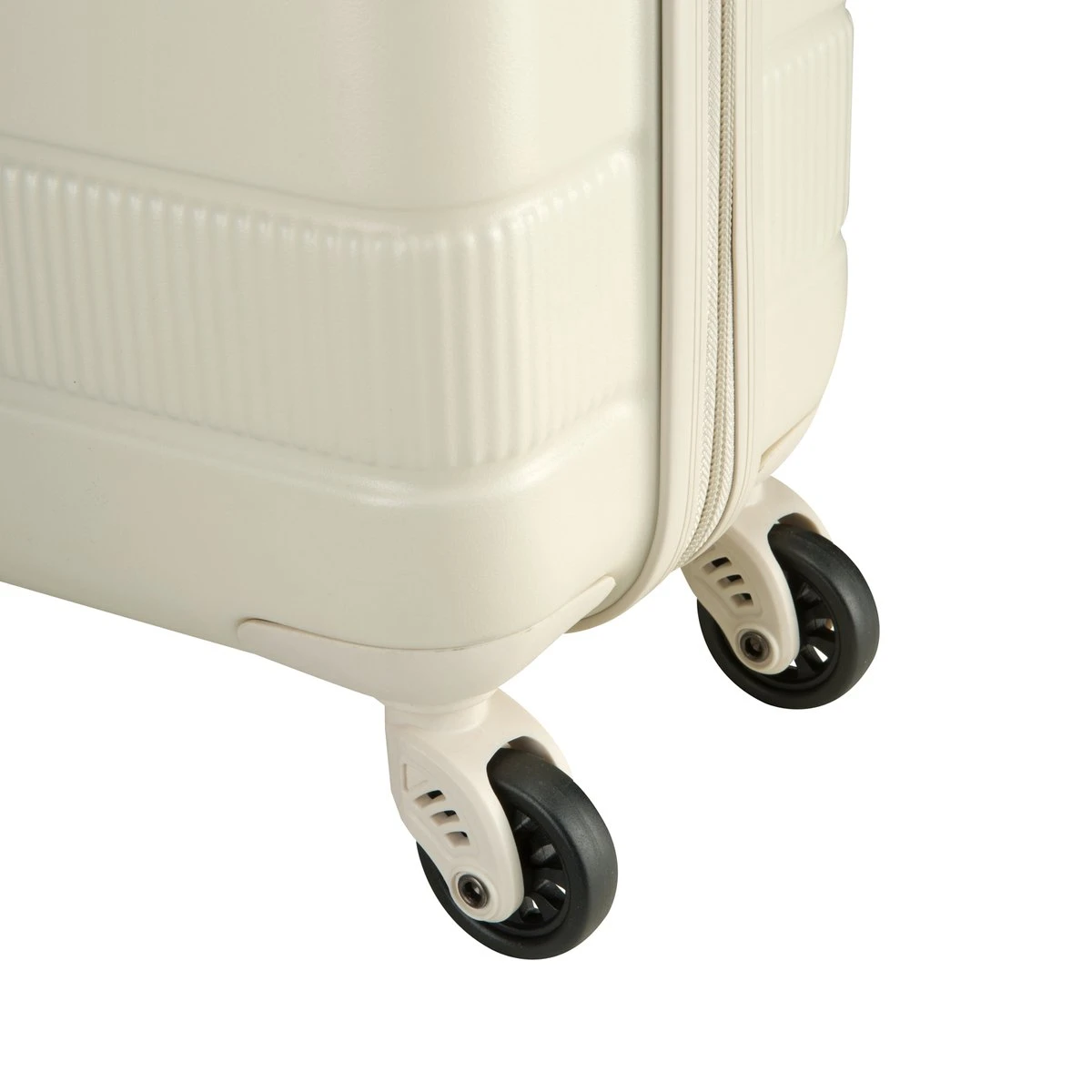 De Florence handbagage koffer is gemaakt van ABS materiaal, een sterk en licht materiaal zodat je veel gewicht overhoudt voor je reisspullen. Daarnaast heeft de koffer 4 enkele zwenkwielen en rolt hij lekker met je mee de wereld over. Het geïntegreerde cijferslot (let op: geen TSA slot) houdt je spullen goed veilig.