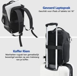CabinMax Memphis Reistas– Handbagage 30L – Rugzak – Backpack – 45x35x20cm – Lichtgewicht – Grijs