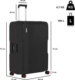 CarryOn Porter ® Reiskoffer – 77cm Trolley Met TSA-slot – 100 Ltr – OKOBAN Registratie – Zwart