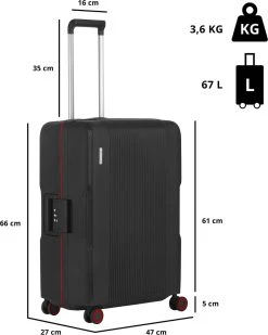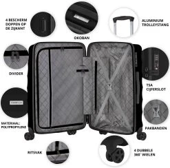 CarryOn Protector Luxe Reiskoffer – Trolley 66cm Met TSA-klikslot En OKOBAN – Ultrasterk – Zwart