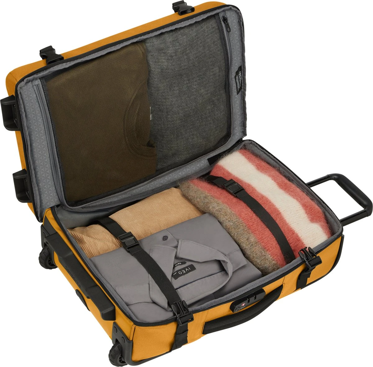 • Reistassen met verstelbare inpakriemen in onderste compartiment en meerdere organisatievakken voor het opbergen van jouw spullen.