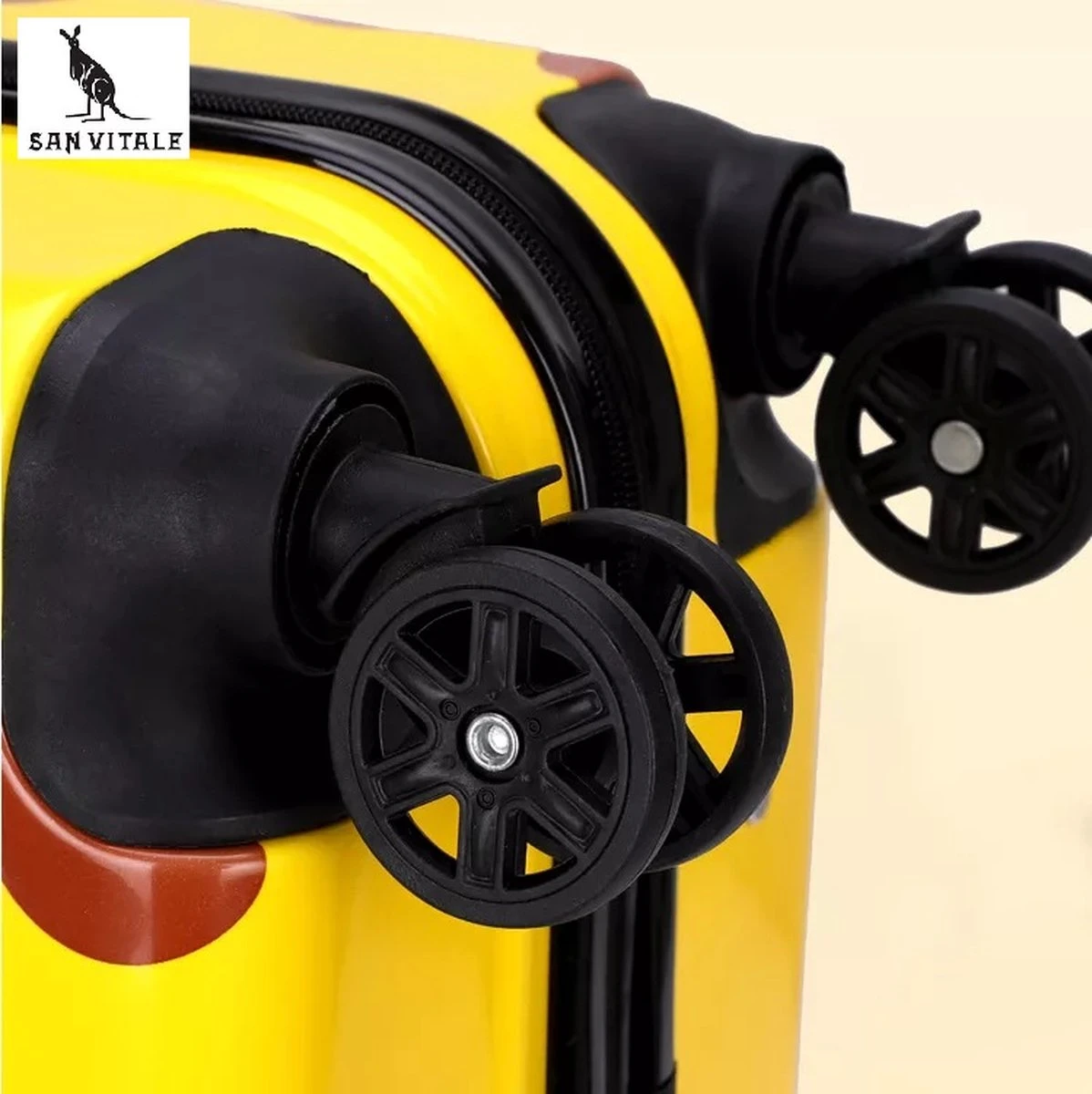 Door de 4 zwenkwieltjes verplaatst de koffer zich ook makkelijk waardoor het voor u of uw kleintje een eitje is de koffer te verplaatsen. Tevens is het unieke, vrolijke design makkelijk terug te vinden op de bagageband maar kan zij ook zeker mee als handbagage.