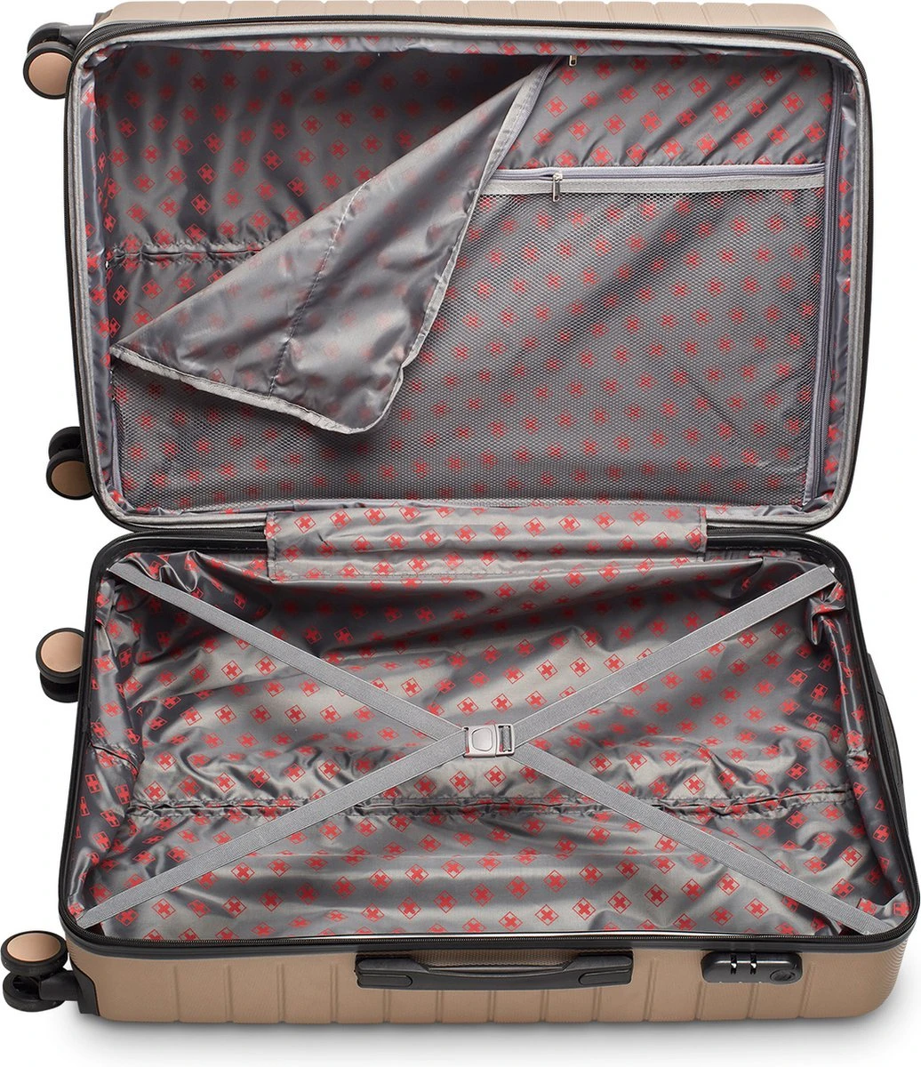 Tevens zijn de koffers voorzien van een TSA-cijferslot en zijn de koffers expandable door middel van een extra rits.