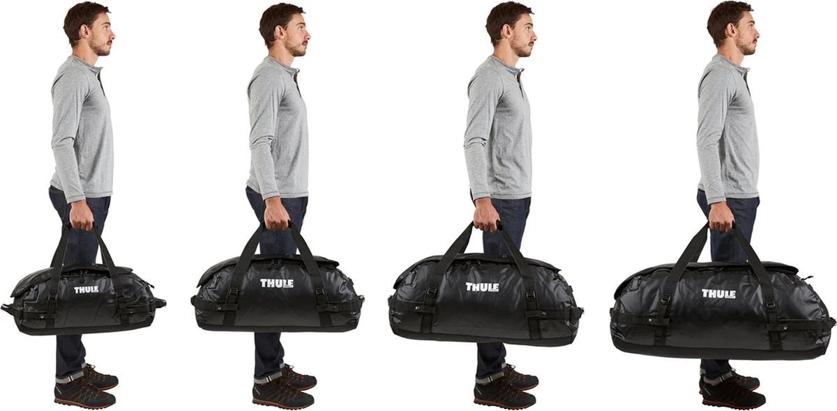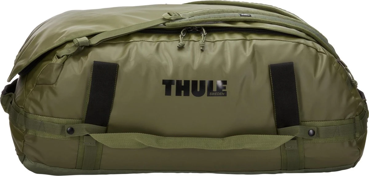 Een robuuste, weerbestendige duffel met afneembare rugzakbanden en een brede mondopening.