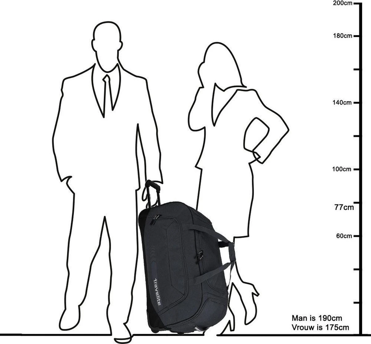 Wieltas uit de Kick Off serie van Travelite. Deze reistas heeft een ruim hoofdcompartiment met volledige U-vormige ritssluiting. Het interieur is voorzien van een apart schoenenvak en een transparant vak. Aan de voor- en achterzijde zit een extra ritsvak. Zeer geschikt voor een weekend weg of een stedentrip. Praktisch in gebruik door de 2 soepele wielen, 2 stevige handgrepen en een verstelbare trekstang.