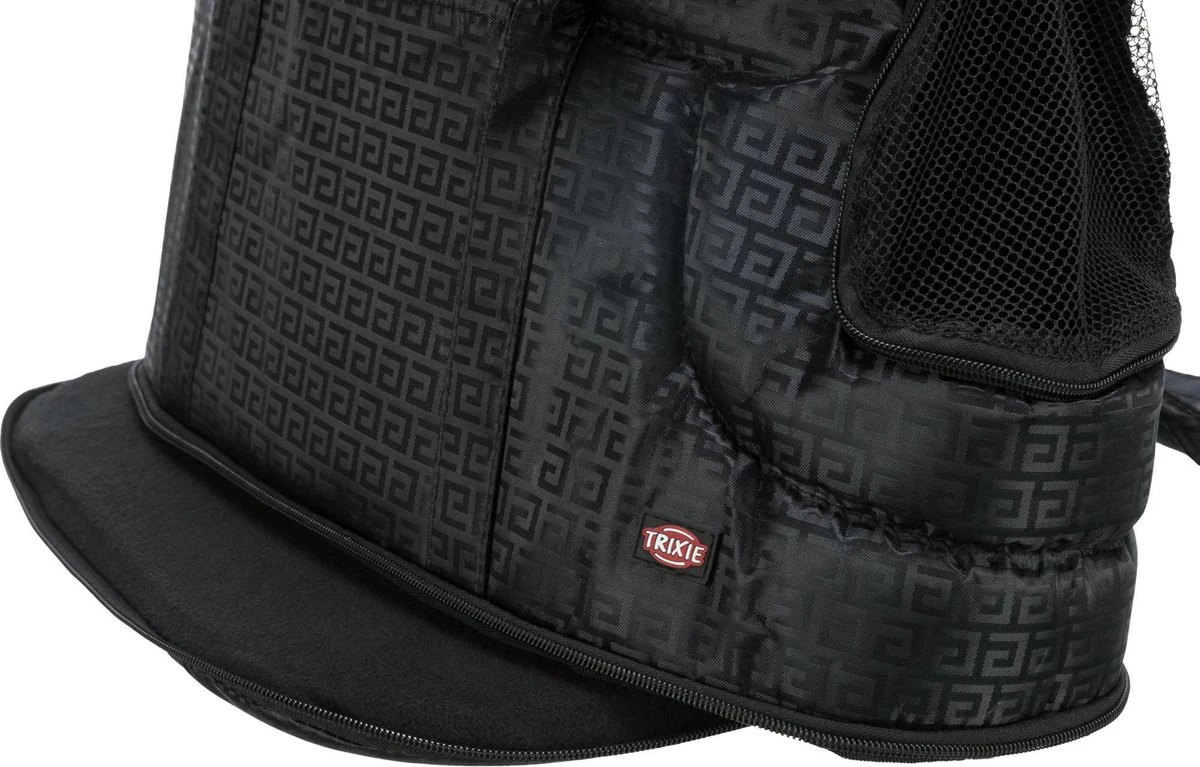 Trixie Hondentas Riva Zwart 26x30x45 cm• Polyester bekleding • Schuimrubber vulling • Met zijvak • Geïntegreerde korthouder voorkomt dat het dier eruit springt • Gaas-inzetstuk met ritssluiting aan de voorkant • Binnenvoering: fleece