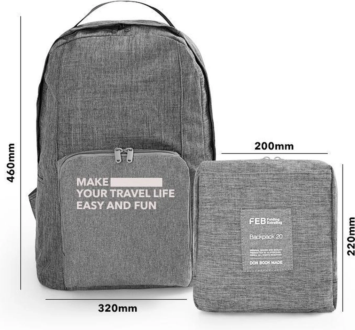 Makkelijk opvouwbaar tot een klein dichtgeritst pakketje van 20 x 20 cm.